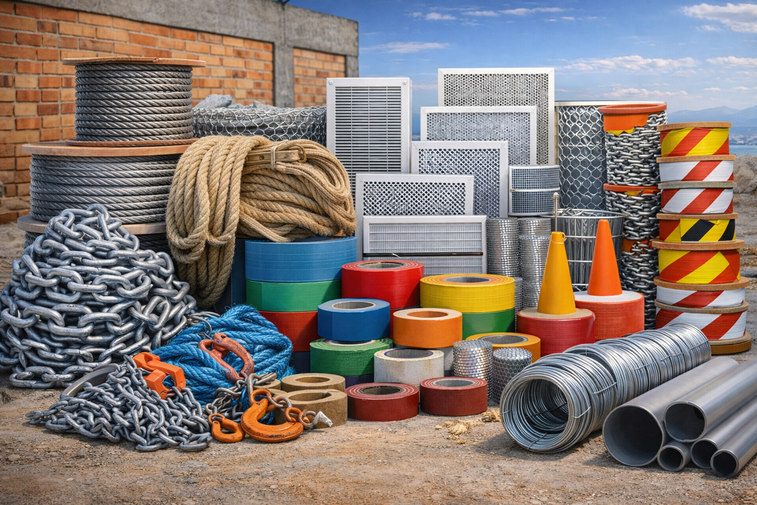 Nel nostro reparto edilizia sono disponibili accessori edili indispensabili per la gestione quotidiana del cantiere: corde, catene, cavi, derivati vergella, griglie di aerazione, nastri tecnici e segnaletici.