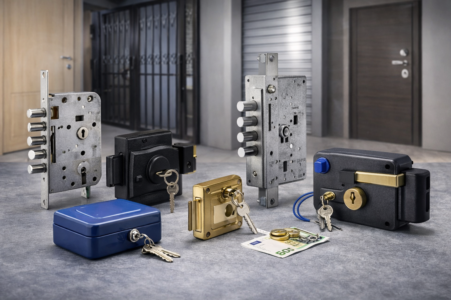 Nel nostro assortimento trovi cassaforti a muro, cilindri europei, lucchetti di sicurezza, cassette portavalori e serrature per ogni esigenza. Selezioniamo prodotti affidabili e certificati, garantendo disponibilità immediata di magazzino e supporto tecnico nella scelta delle soluzioni più adatte.